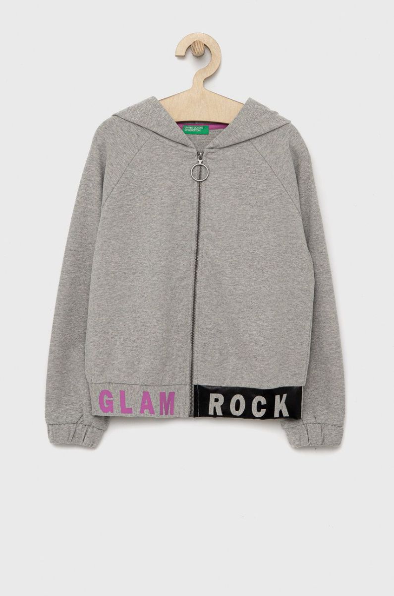 Дитяча кофта United Colors of Benetton колір сірий з капюшоном з принтом (2735601)