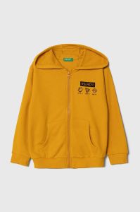 Дитяча кофта United Colors of Benetton колір жовтий з капюшоном з принтом