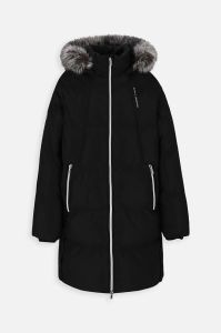 - Завищений комір і незнімний капюшон забезпечують додатковий захист від холоду.