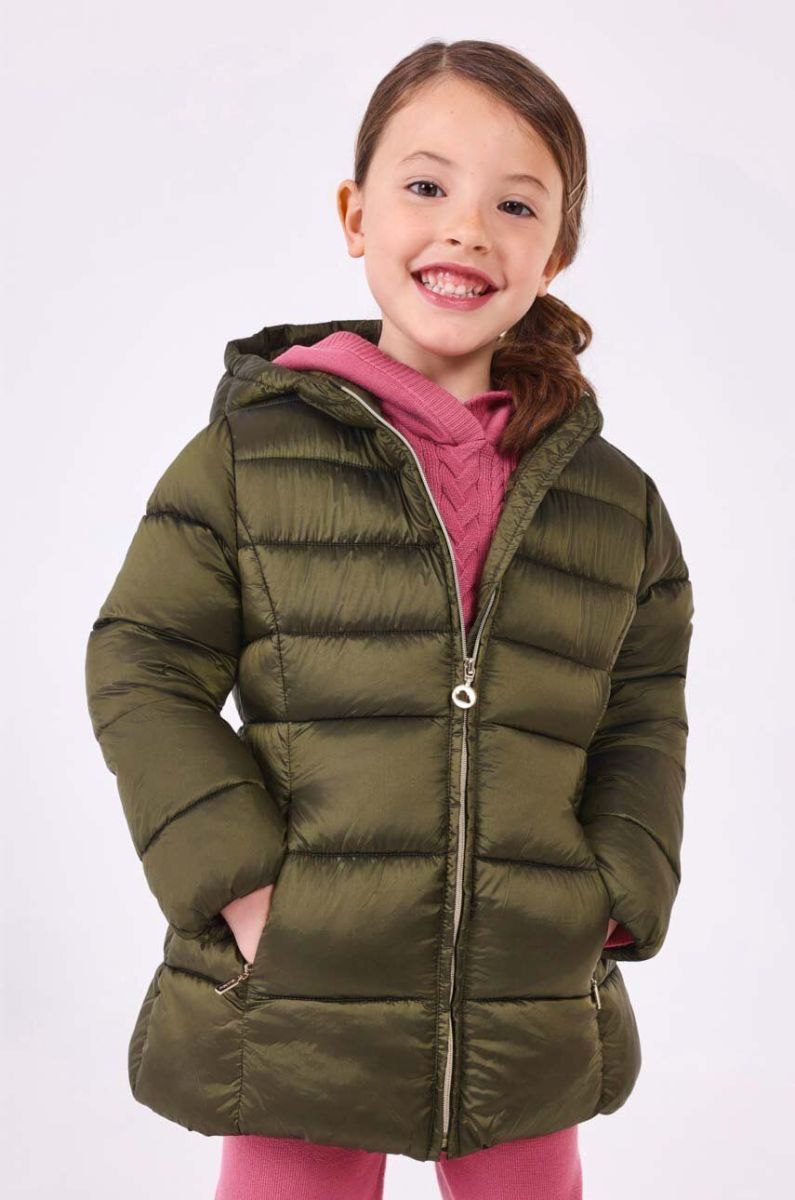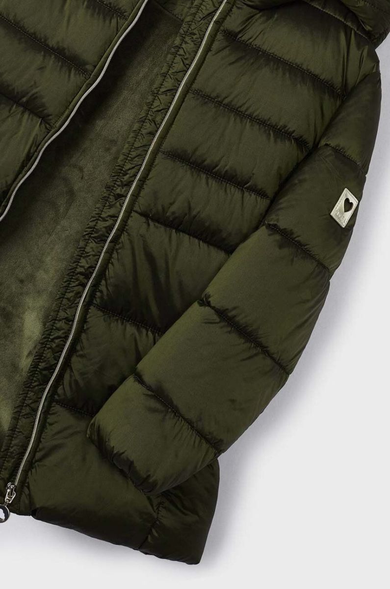 - Завищений комір і незнімний капюшон забезпечують додатковий захист від холоду.