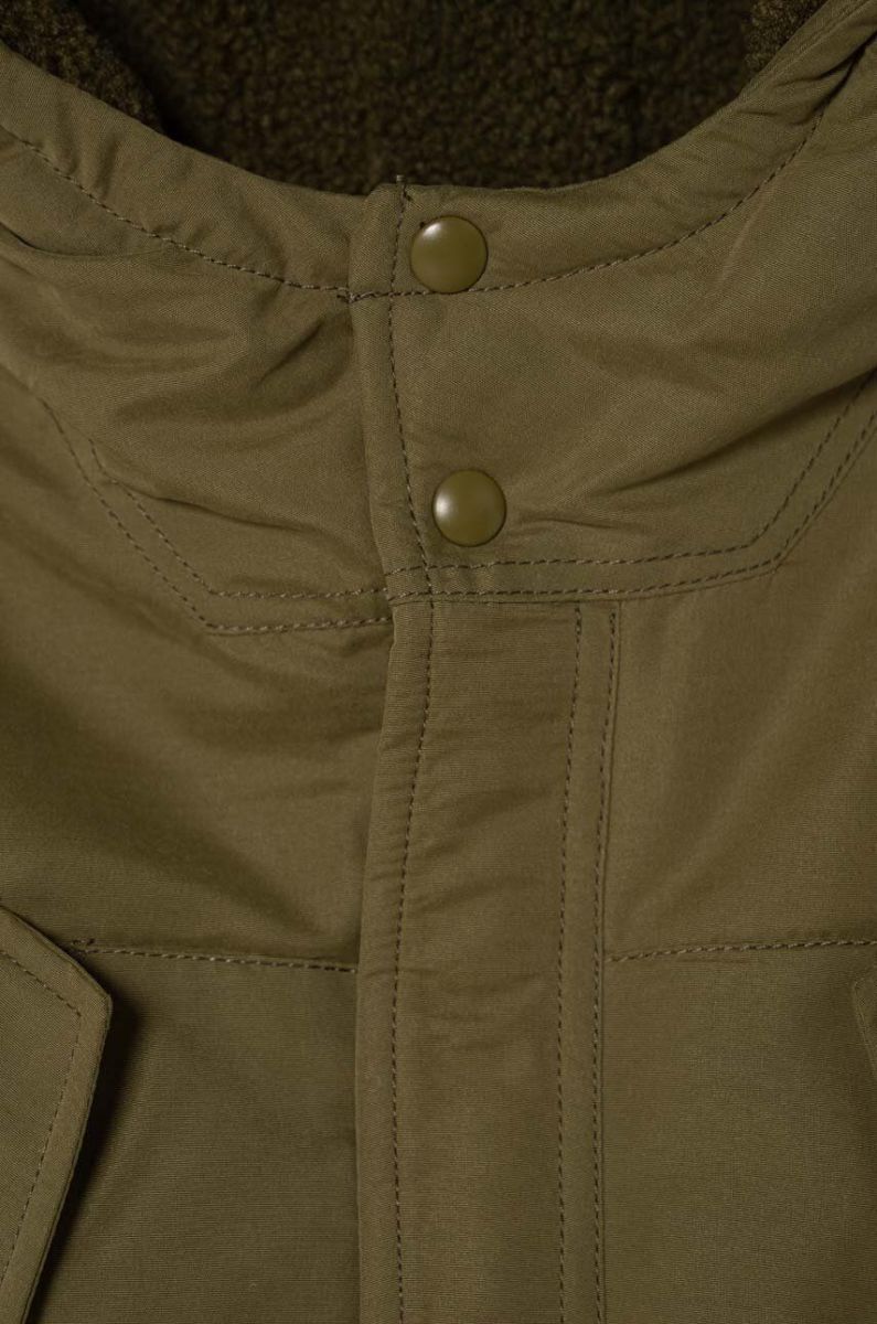 - Завищений комір і незнімний капюшон забезпечують додатковий захист від холоду.
