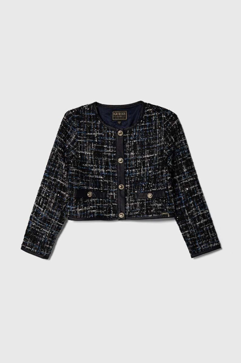 Дитяча куртка з домішкою вовни Guess колір чорний