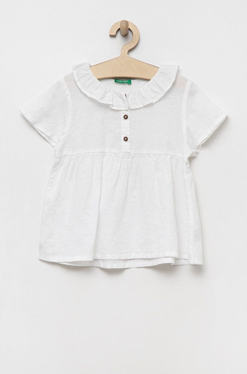 Дитяча льняна блузка United Colors of Benetton колір білий однотонна (3247045)