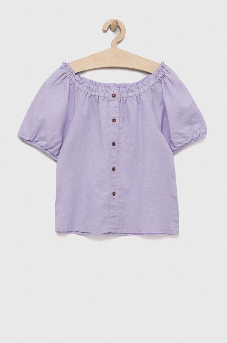 Дитяча льняна блузка United Colors of Benetton колір фіолетовий однотонна (3247038)