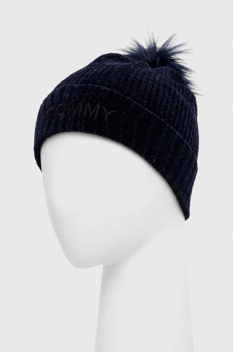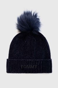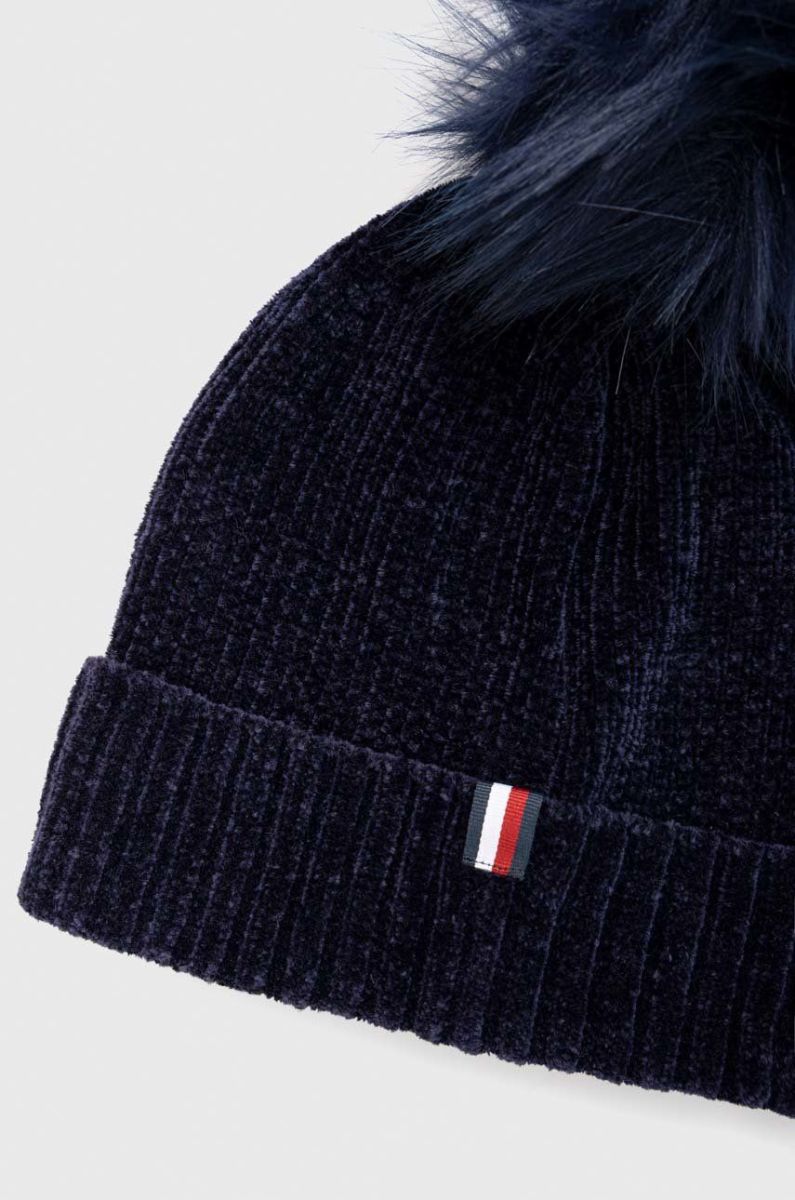 Дитяча шапка Tommy Hilfiger колір синій з тонкого трикотажу