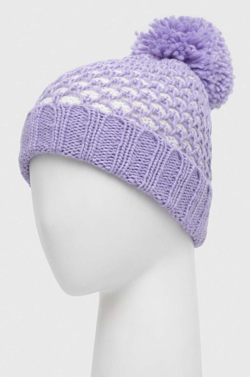 Дитяча шапка з домішкою вовни United Colors of Benetton колір фіолетовий з товстого трикотажу