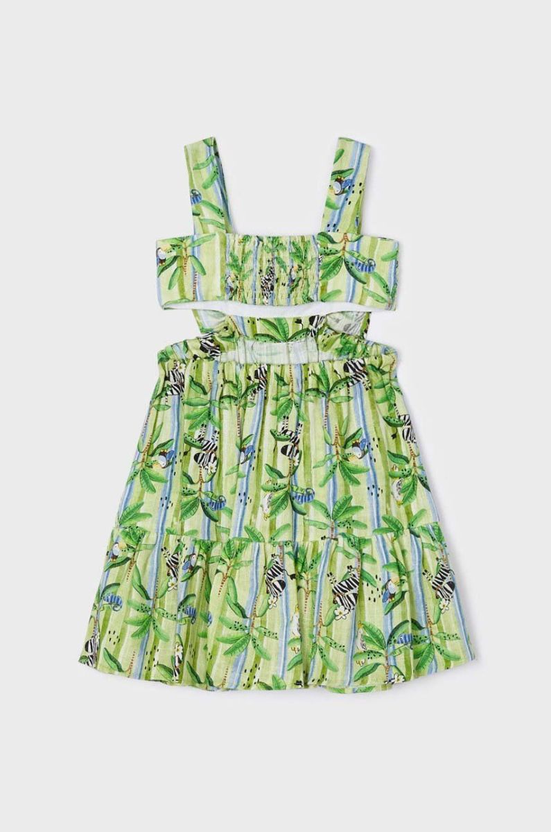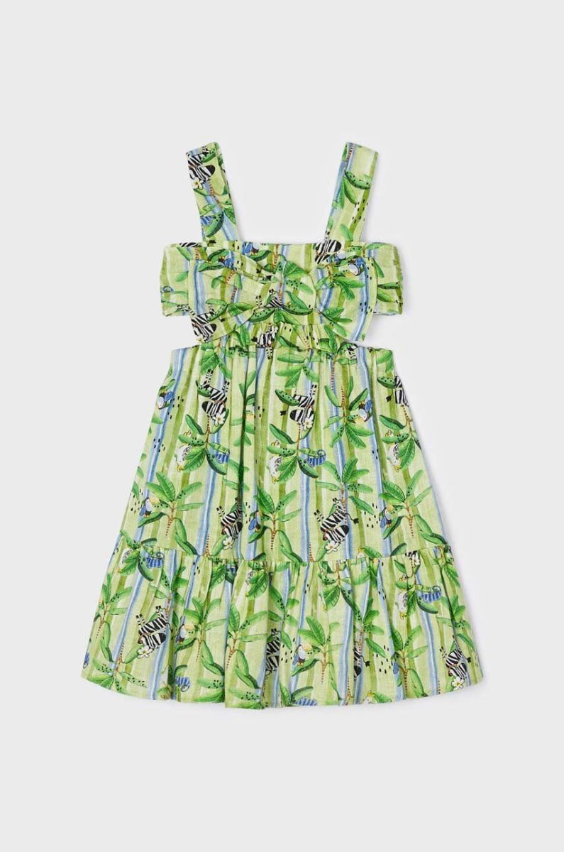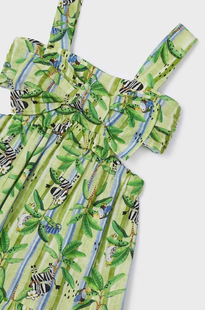 Дитяча сукня з домішкою льону Mayoral колір зелений mini розкльошена