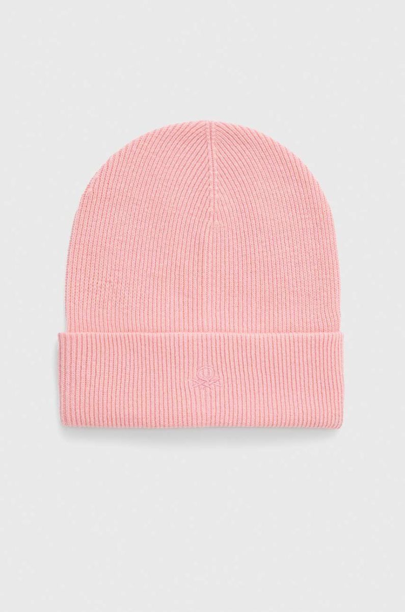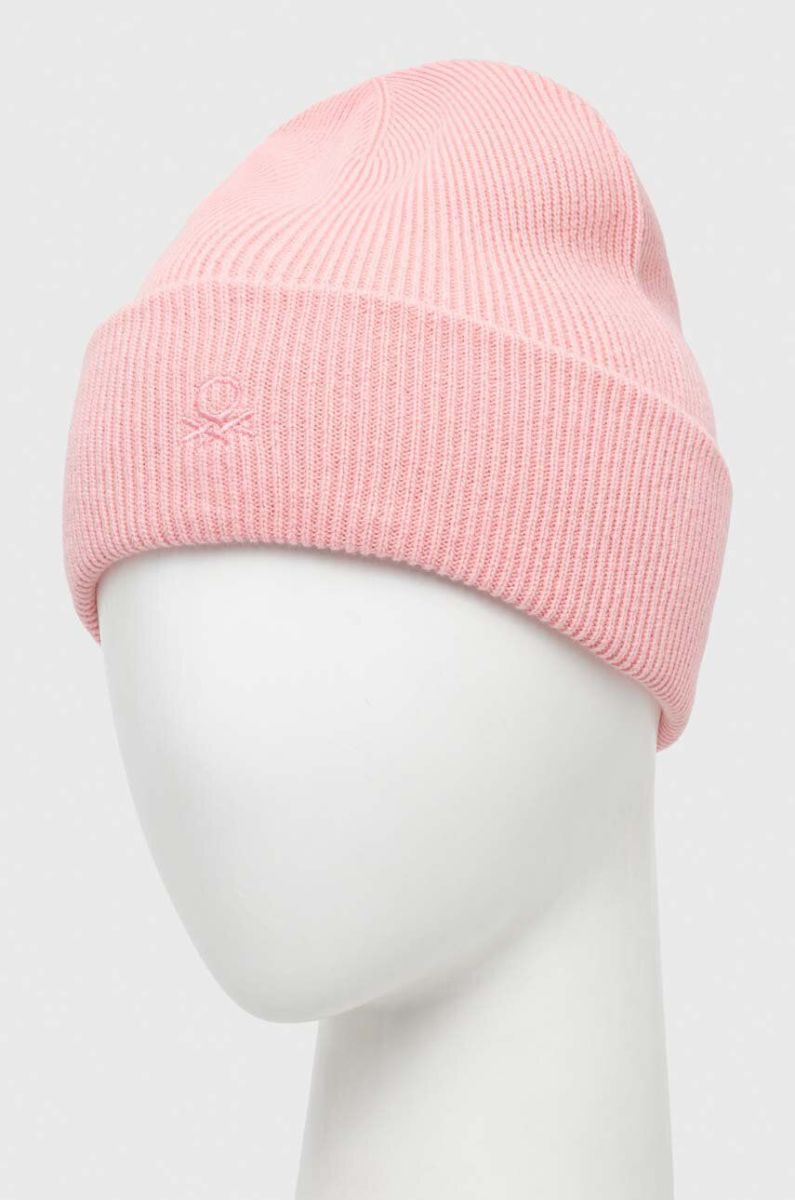 Дитяча вовняна шапка United Colors of Benetton колір рожевий з тонкого трикотажу