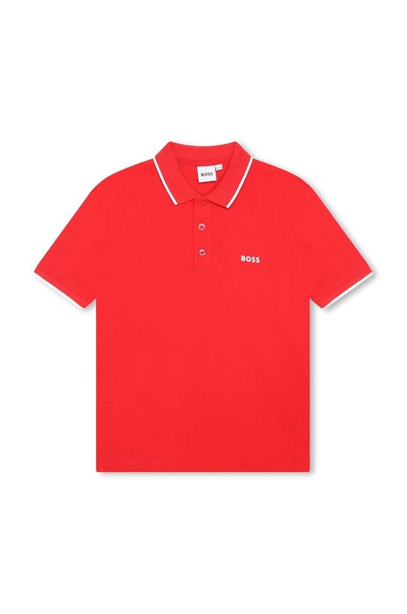 Дитяче бавовняне поло BOSS колір червоний з принтом (3099206)