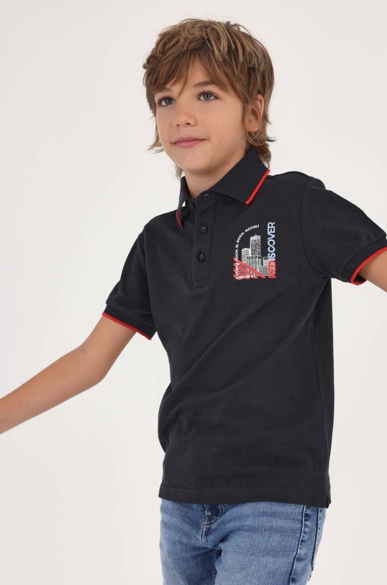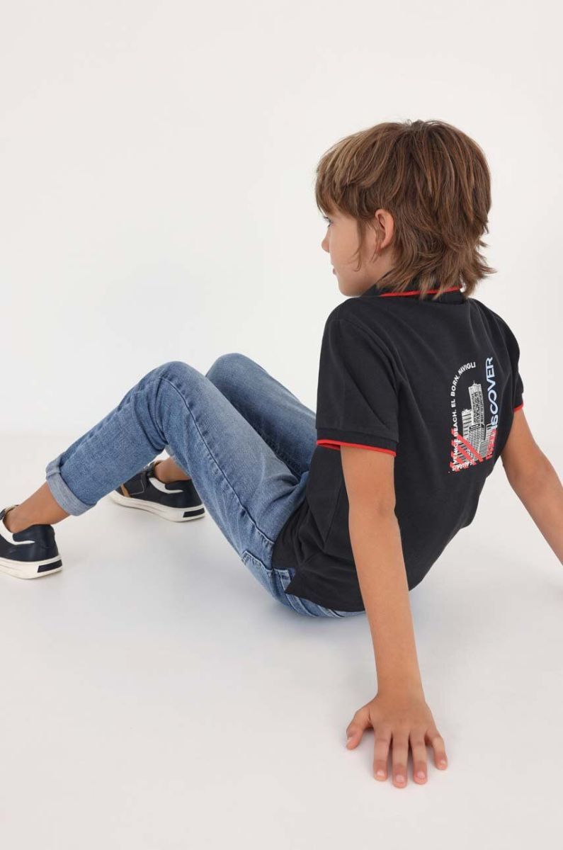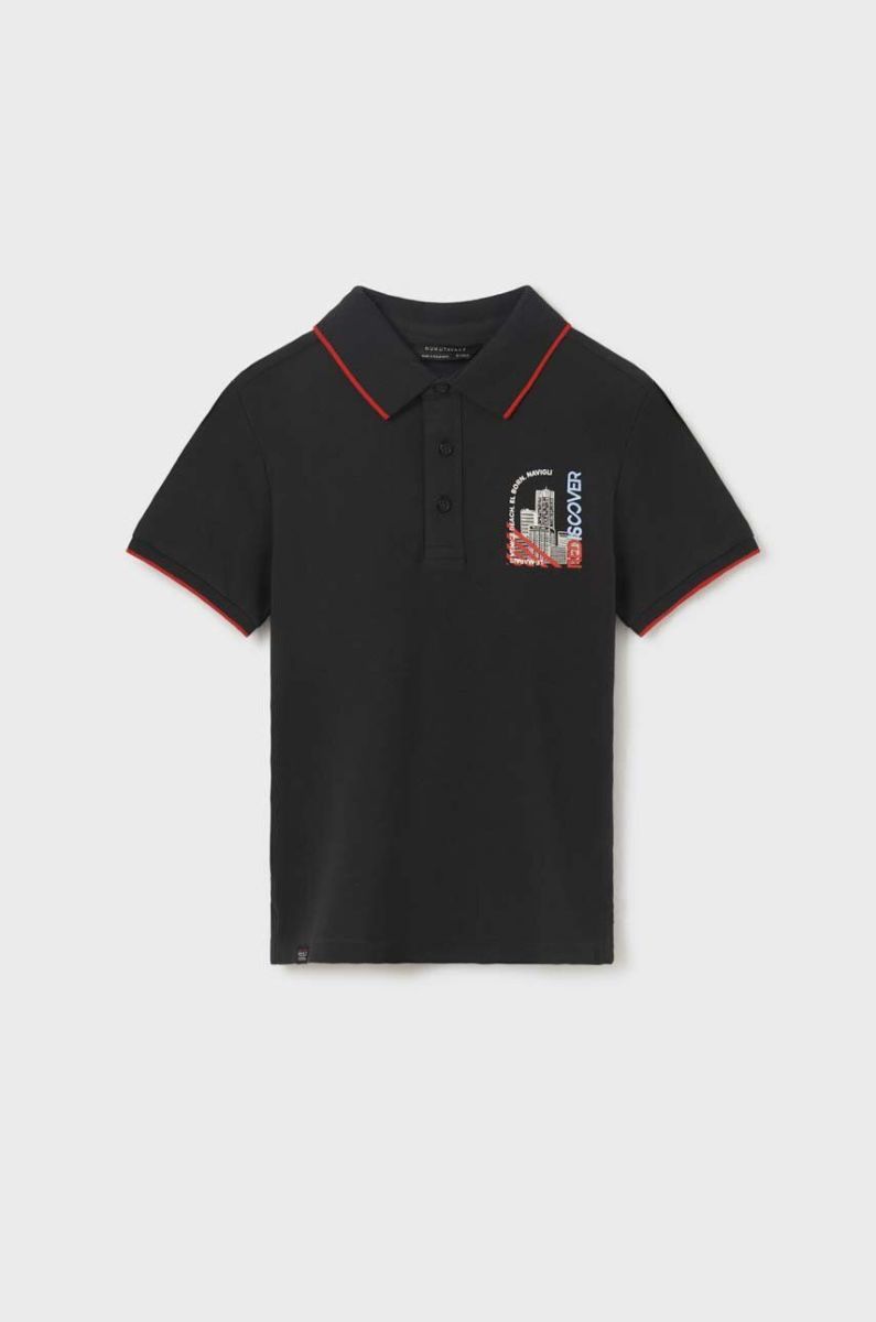Дитяче бавовняне поло Mayoral колір сірий з принтом