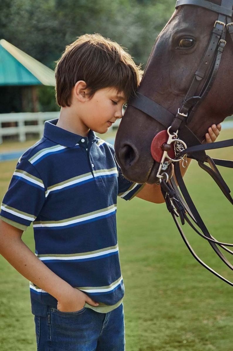 Дитяче бавовняне поло Mayoral колір синій візерунок (2947783)