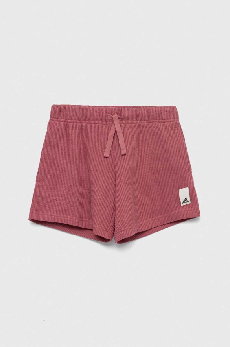 Дитячі бавовняні шорти adidas G L KN SHO колір рожевий однотонні регульована талія