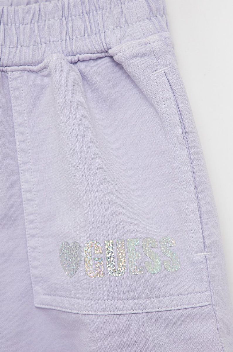 Дитячі бавовняні шорти Guess колір фіолетовий з принтом