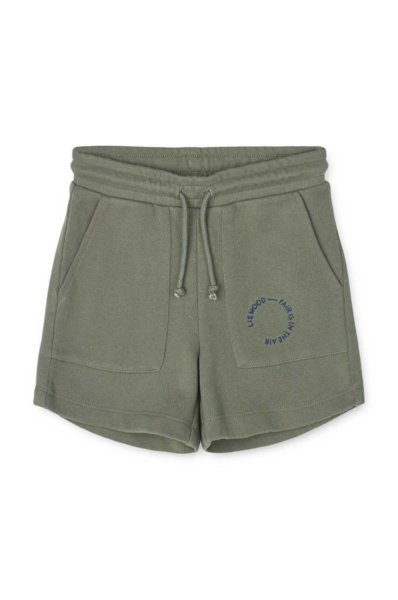 Дитячі бавовняні шорти Liewood колір зелений однотонні