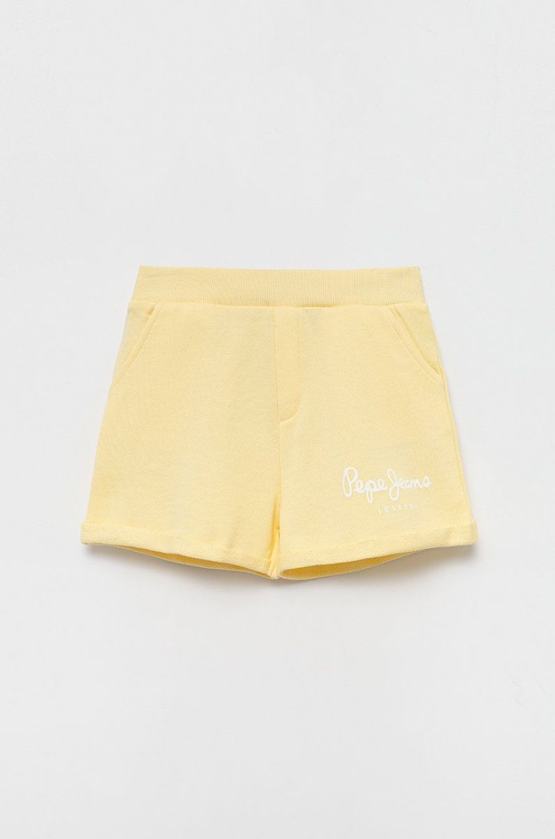 Дитячі бавовняні шорти Pepe Jeans колір жовтий з принтом регульована талія