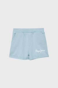 Дитячі бавовняні шорти Pepe Jeans з принтом регульована талія колір блакитний