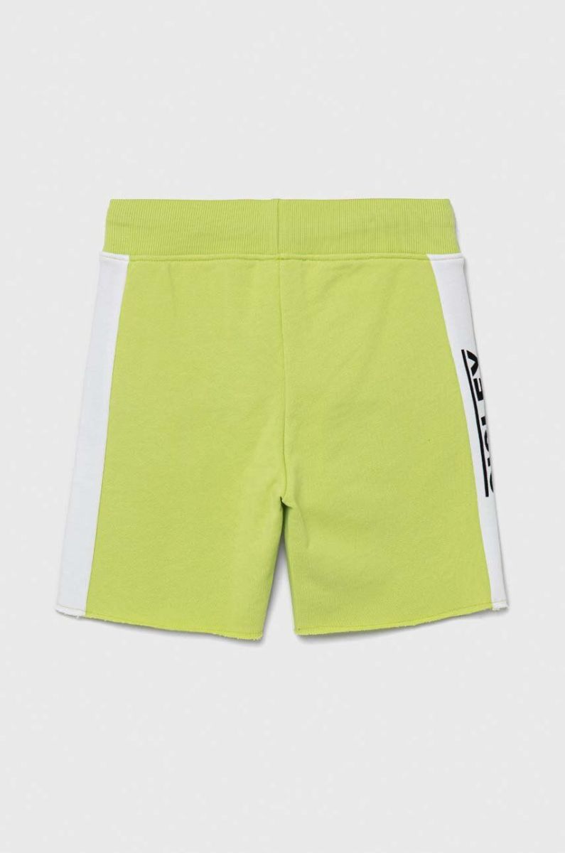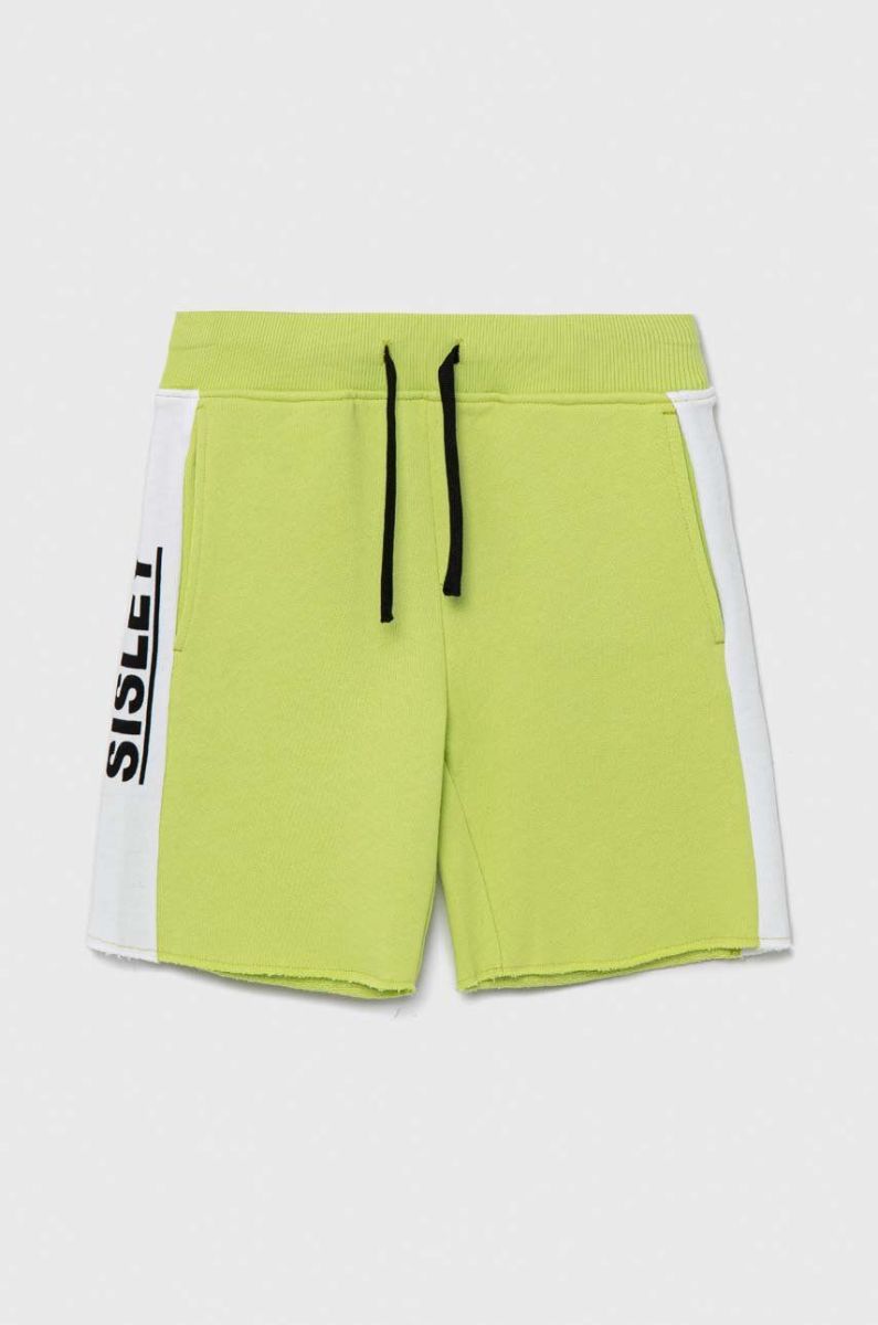 Дитячі бавовняні шорти Sisley колір зелений регульована талія