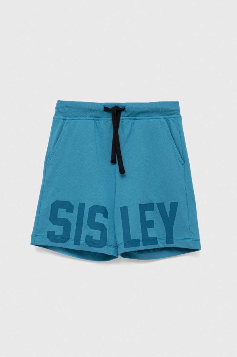 Дитячі бавовняні шорти Sisley регульована талія колір блакитний