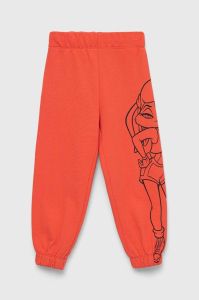 Дитячі бавовняні штани Diadora колір помаранчевий з принтом