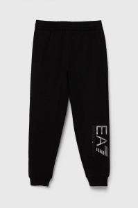 Дитячі бавовняні штани EA7 Emporio Armani колір чорний з принтом (3394796)