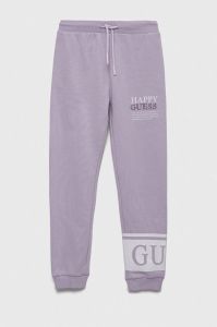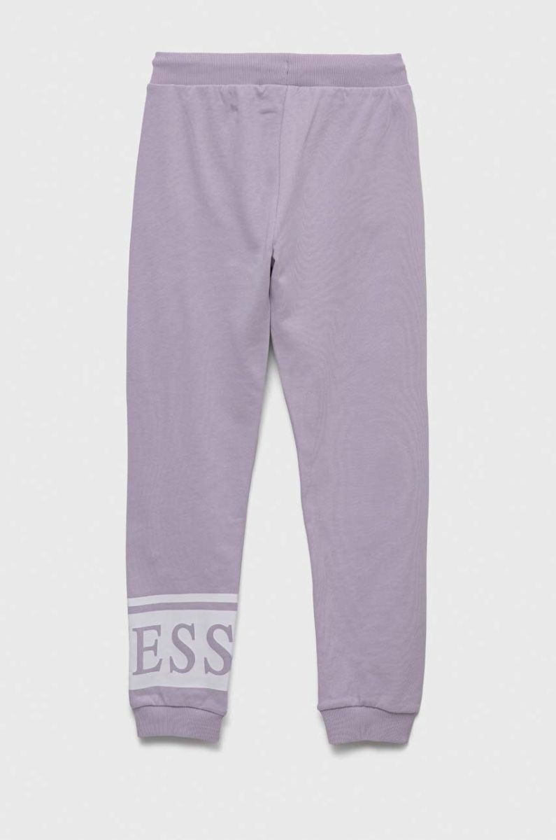 Дитячі бавовняні штани Guess колір фіолетовий з принтом