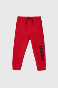 Дитячі бавовняні штани HUGO колір бежевий з принтом (3463393)