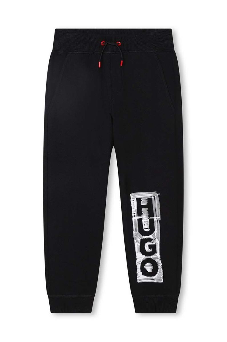 Дитячі бавовняні штани HUGO колір чорний з принтом (3463429)