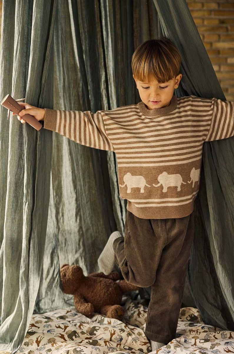 Дитячі бавовняні штани Konges Sl?jd колір зелений однотонні