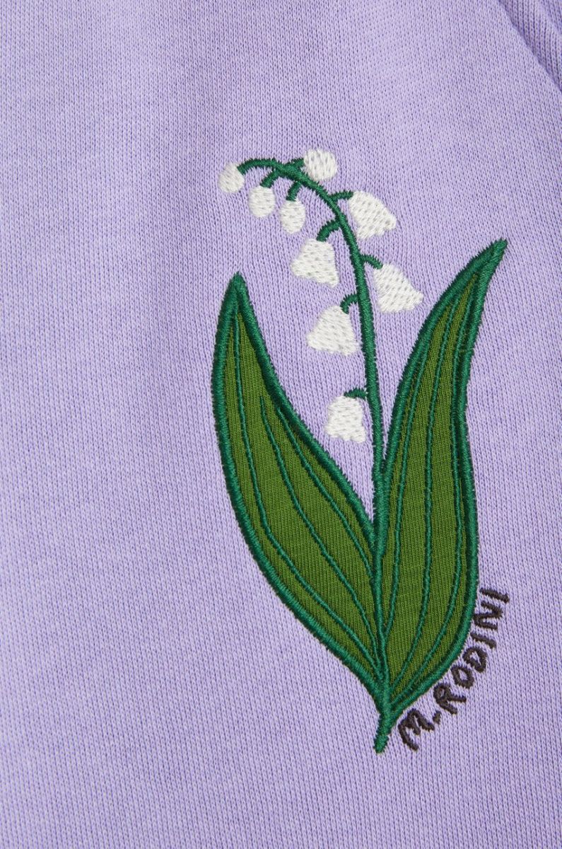 Дитячі бавовняні штани Mini Rodini колір фіолетовий з аплікацією