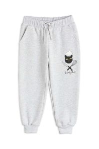 Дитячі бавовняні штани Mini Rodini колір сірий з принтом