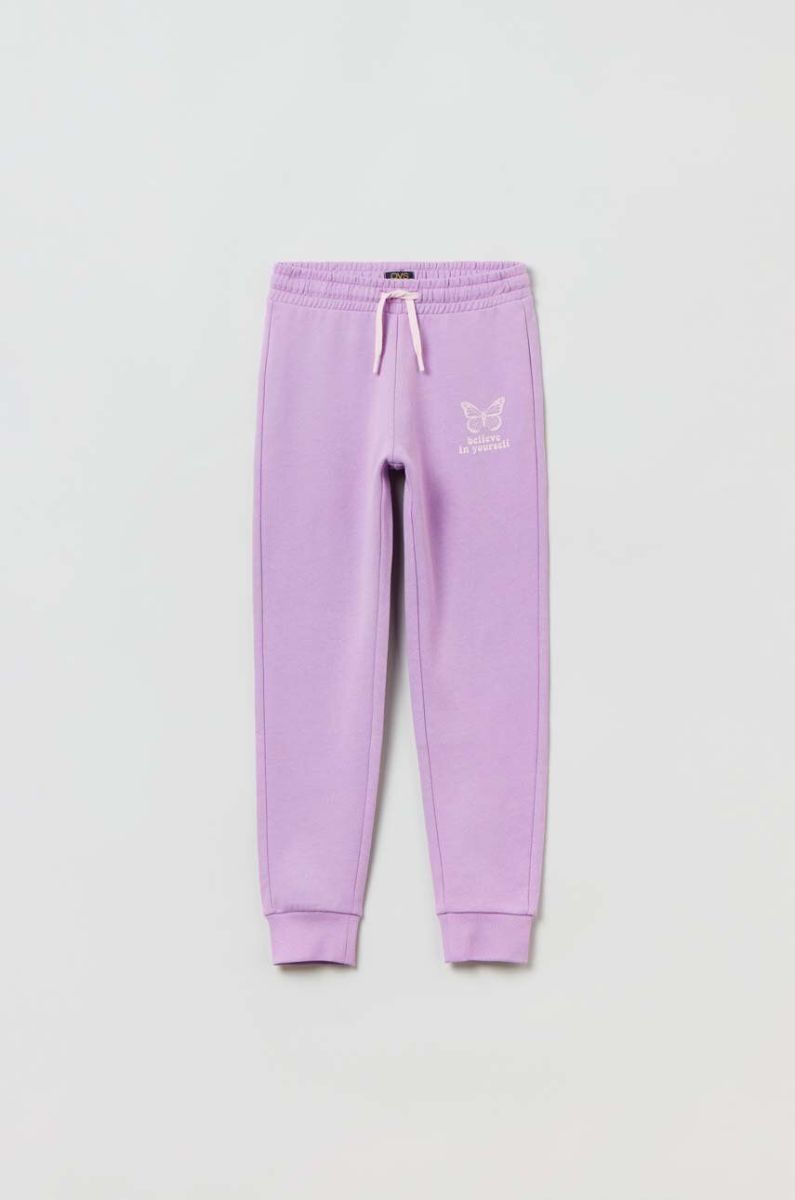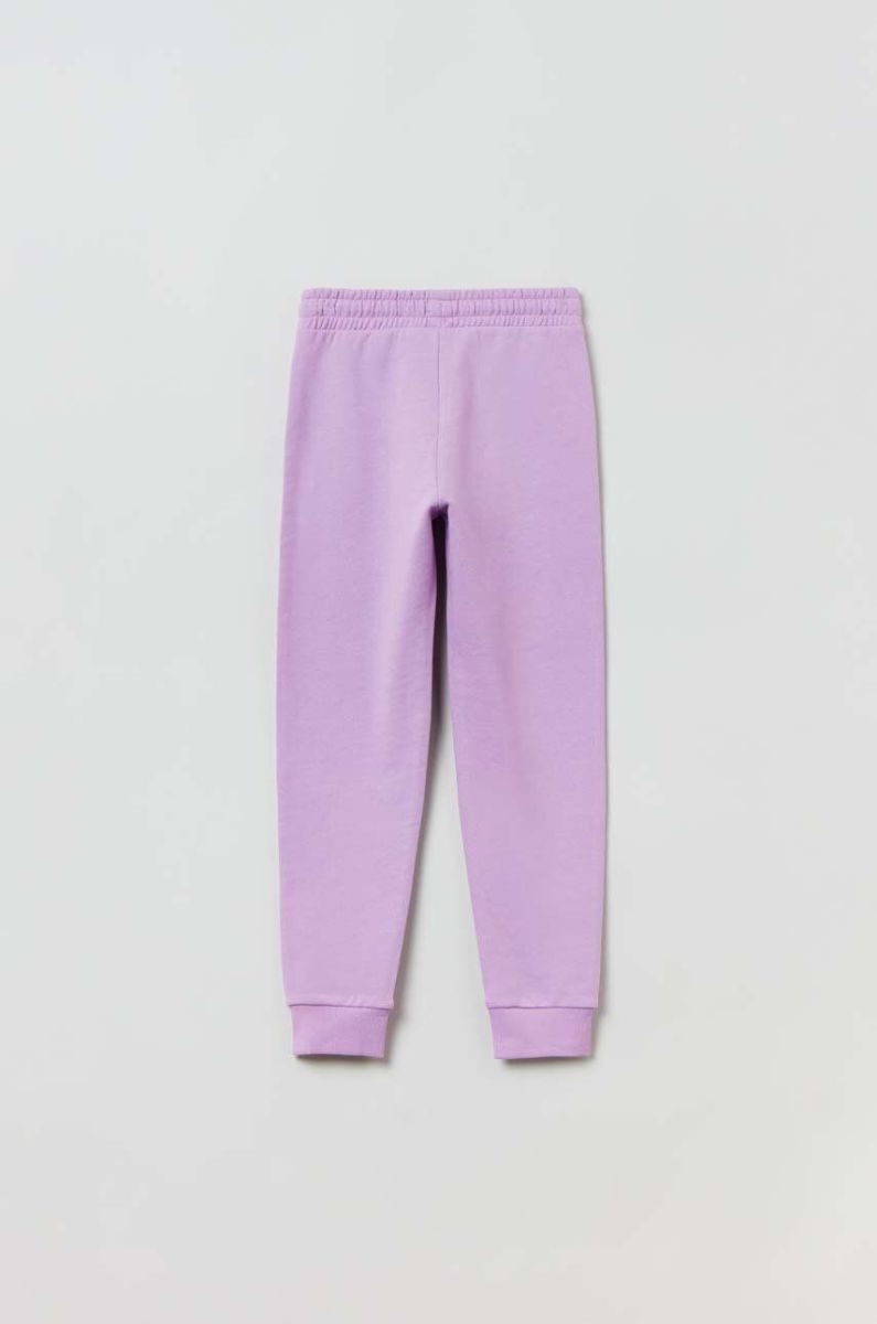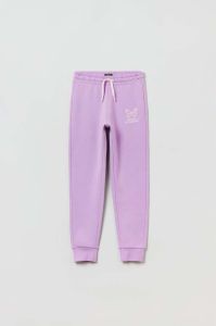 Дитячі бавовняні штани OVS колір фіолетовий з принтом