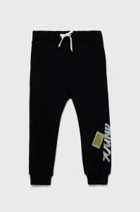 Дитячі бавовняні штани Sisley колір чорний з принтом