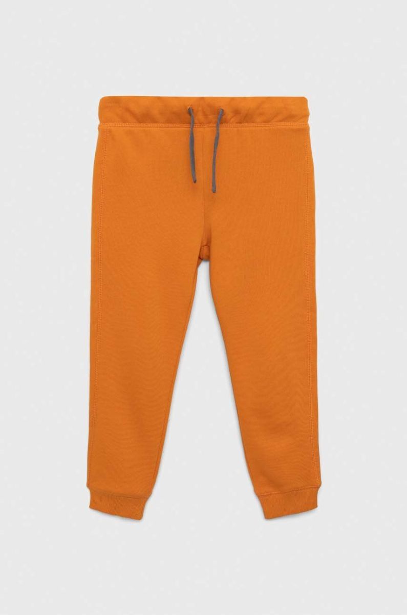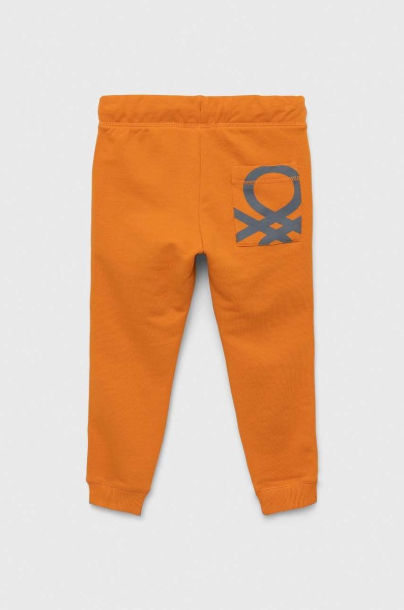 Дитячі бавовняні штани United Colors of Benetton колір помаранчевий з принтом