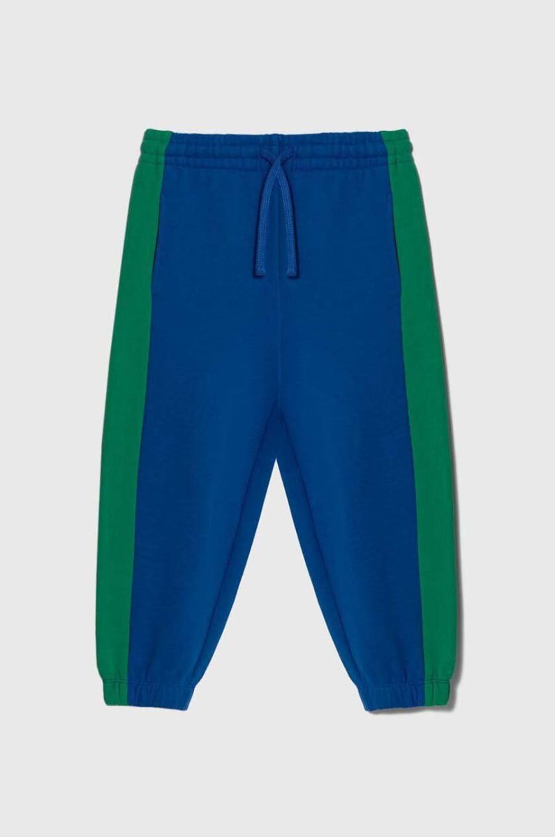Дитячі бавовняні штани United Colors of Benetton візерунок колір блакитний