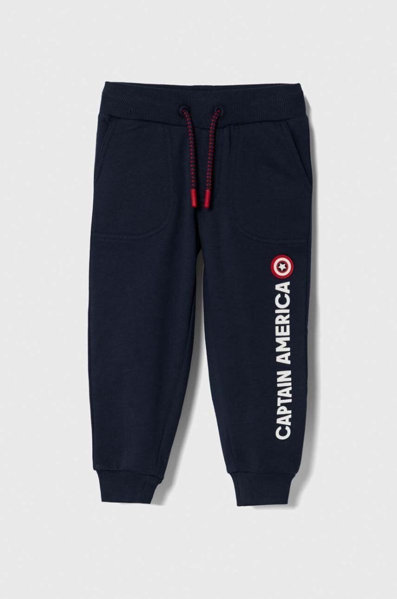 Дитячі бавовняні штани zippy x Marvel колір синій з принтом