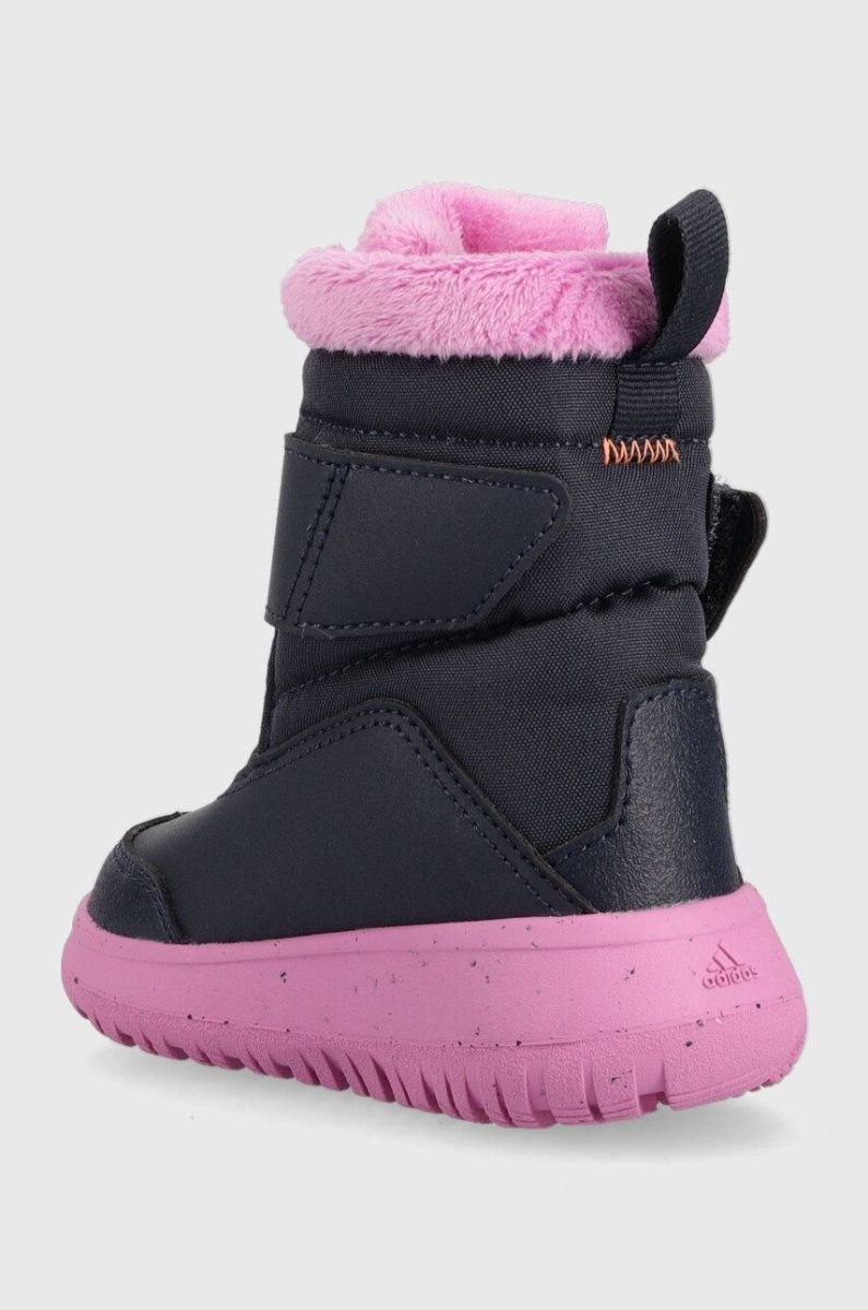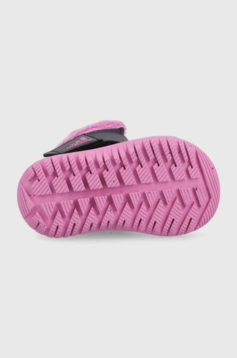 Дитячі снігоходи з колекції adidas. Утеплена модель виконана із поєднання штучної шкіри і текстильного матеріалу.
