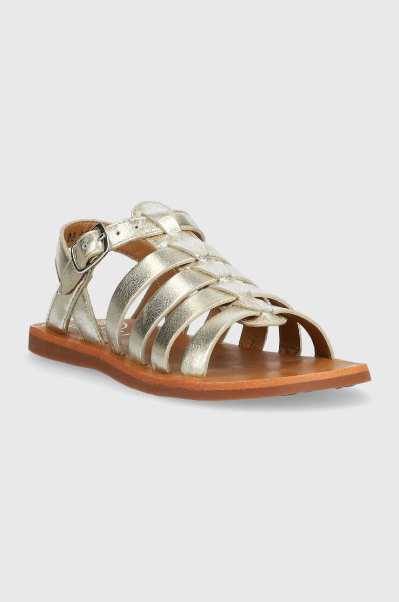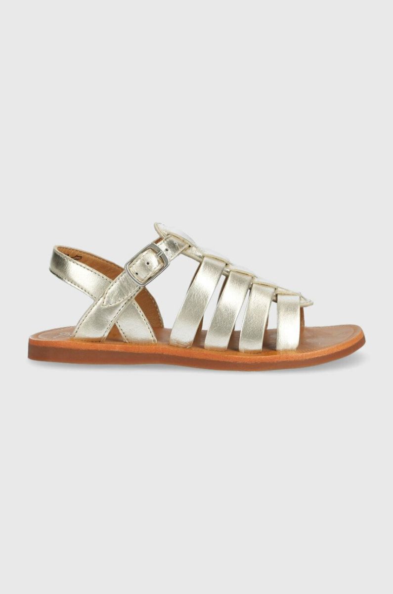 Дитячі шкіряні сандалі Pom D'api колір срібний (2988317)