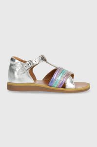 Дитячі шкіряні сандалі Pom D'api колір срібний (3207563)