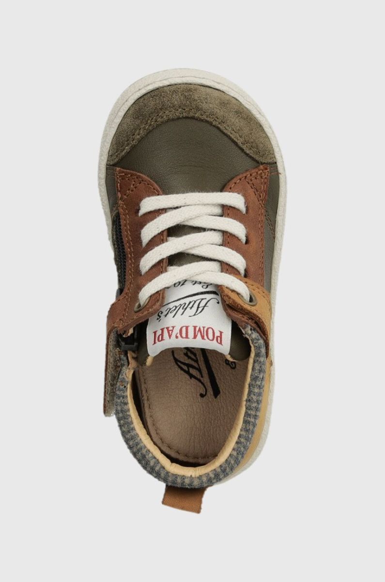 Дитячі шкіряні туфлі Pom D'api MOUSSE ZIP TREK колір зелений (3562201)