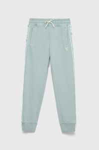 Дитячі спортивні штани Guess колір зелений з аплікацією