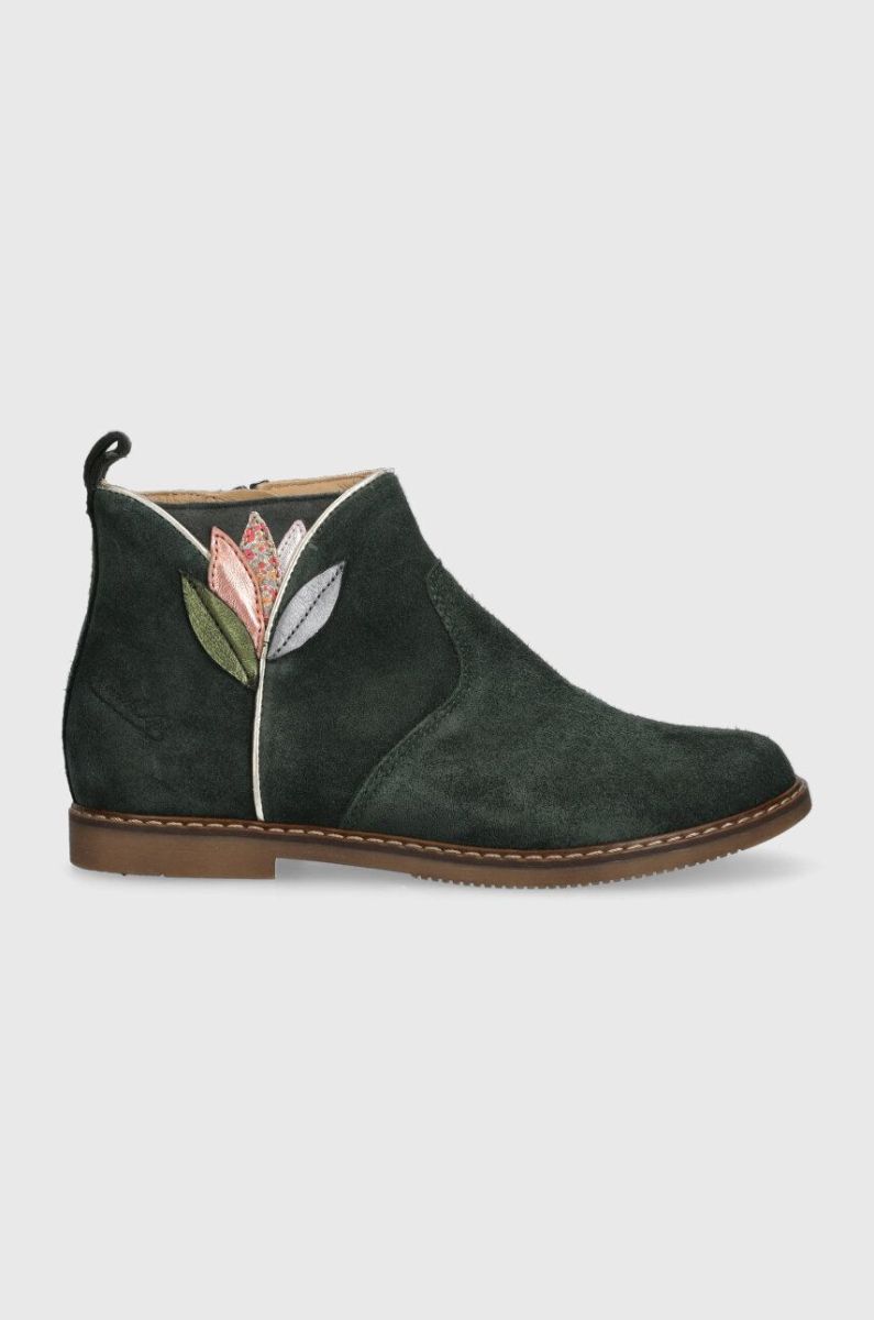 Дитячі замшеві черевики Pom D'api CITY FLORA колір зелений (3530978)
