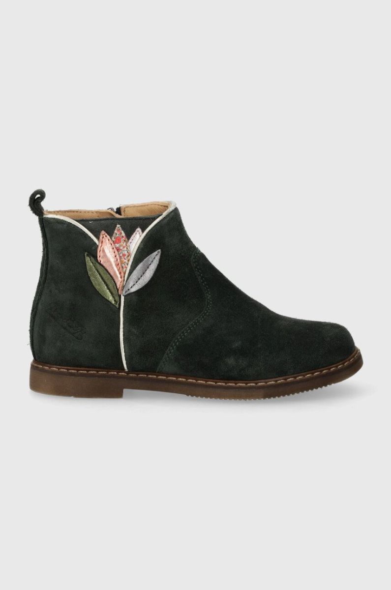 Дитячі замшеві черевики Pom D'api CITY FLORA колір зелений (3531136)