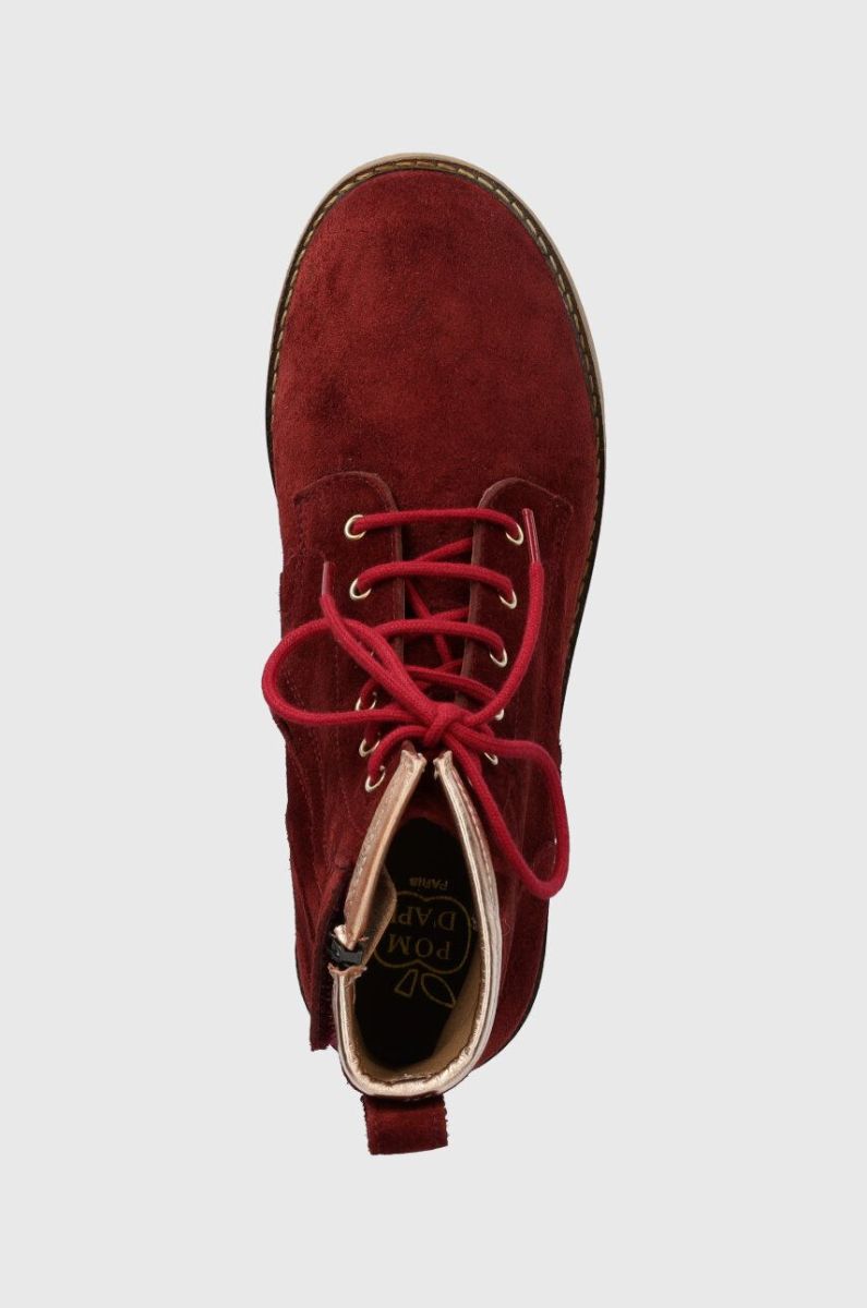 Дитячі замшеві черевики Pom D'api TRIP HI LACE колір бордовий (3531085)