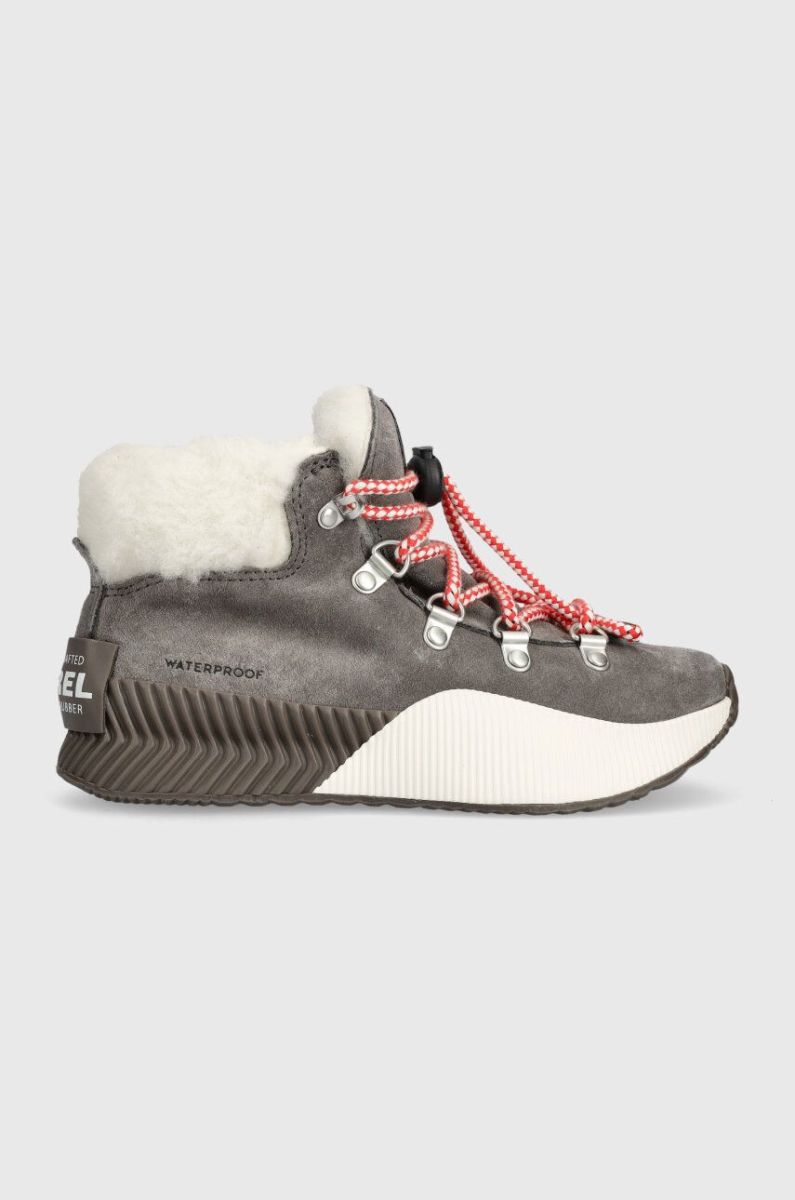 Дитячі замшеві зимові черевики Sorel 1979101 YOUTH ONA CONQUEST FELT колір сірий