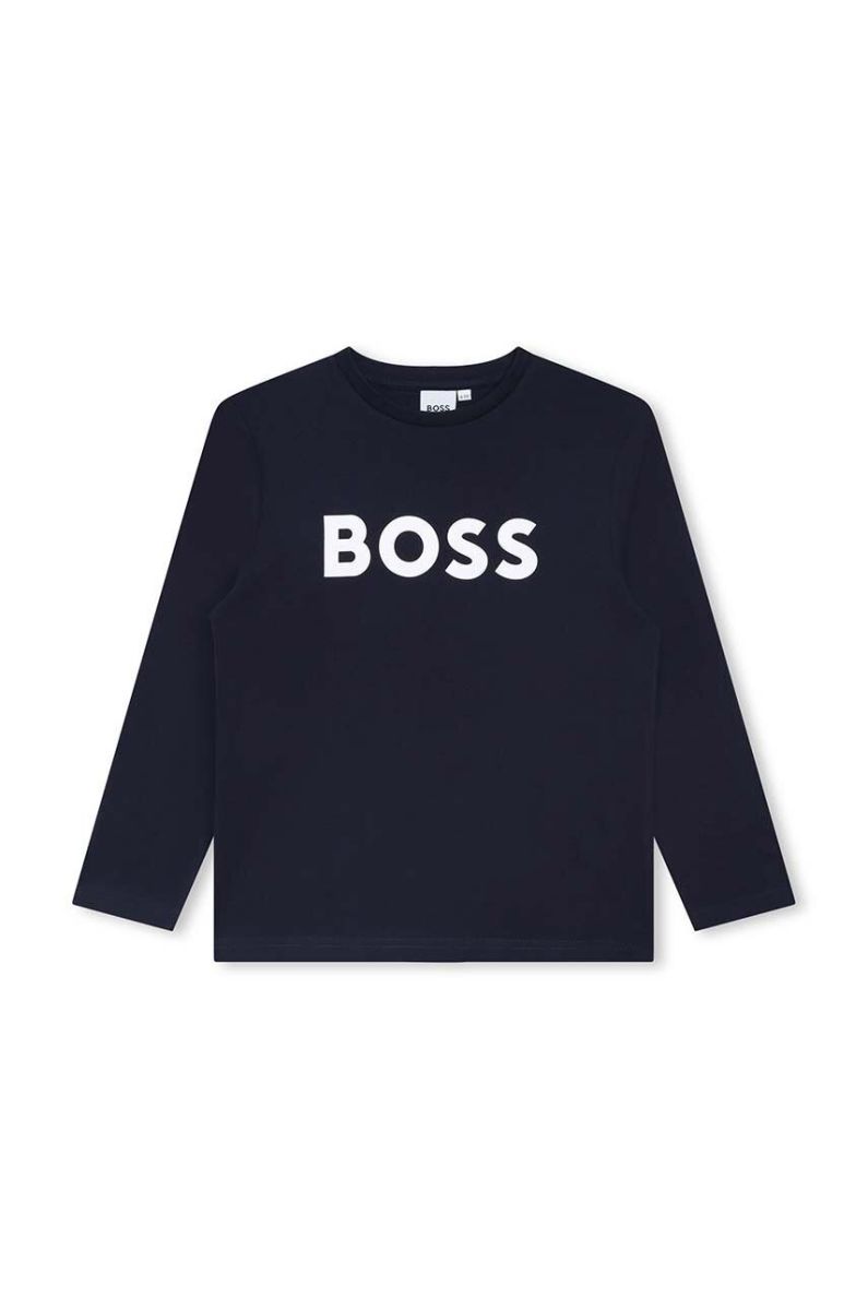 Дитячий бавовняний лонгслів BOSS колір синій з принтом (3094466)