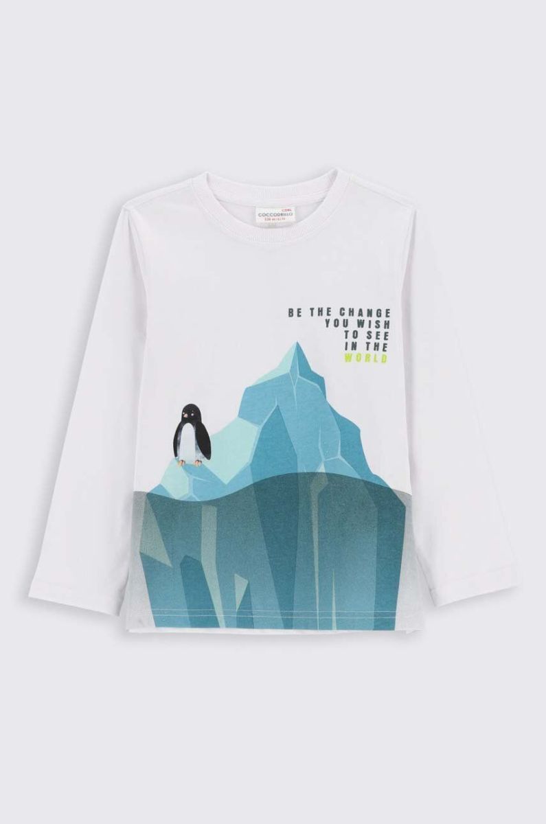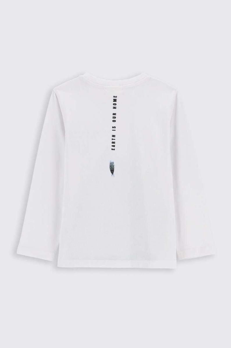 Дитячий бавовняний лонгслів Coccodrillo колір білий з принтом