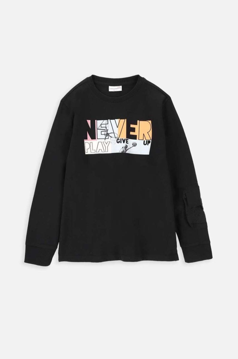 Дитячий бавовняний лонгслів Coccodrillo колір чорний з принтом (3470386)