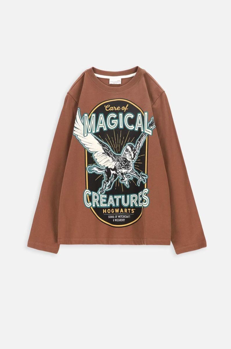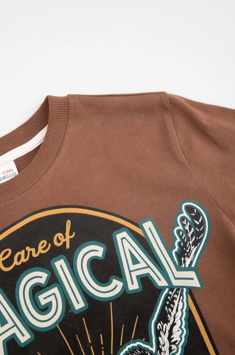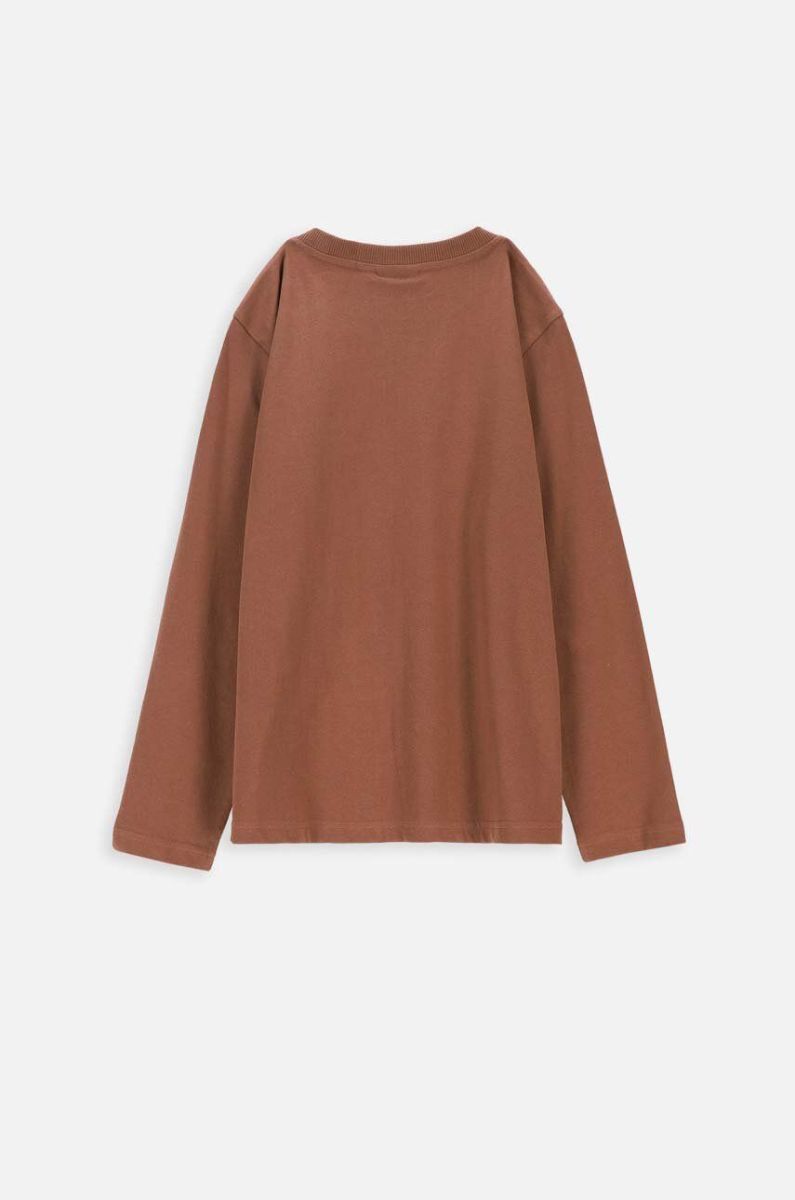 Дитячий бавовняний лонгслів Coccodrillo колір коричневий з принтом (3585338)