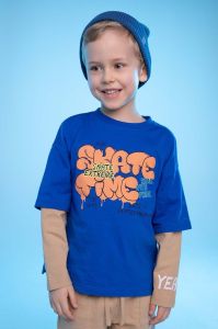 Дитячий бавовняний лонгслів Coccodrillo колір синій з принтом