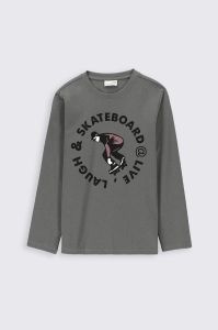 Дитячий бавовняний лонгслів Coccodrillo колір зелений з принтом (2624612)